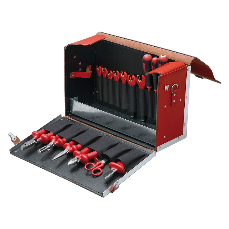 3045V-2: Für Arbeiten an elektrischen Anlagen. Robuste Ledertasche mit Metallverstärkungen. Enthält isolierte Bahco Standardwerkzeuge.
