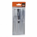 6teiliger Feilensatz, in Kunststoff-Tasche mit Aufhängeloch. Bestehend aus je einer Ansatz-, Flach-, Halbrund-, Rund-, Dreikant- und Vierkantfeile.