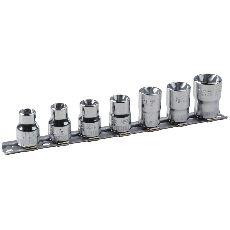7teiliger Satz Steckschlüssel-Einsätze 7400TORX-E, auf Klemmleiste Rail-187.