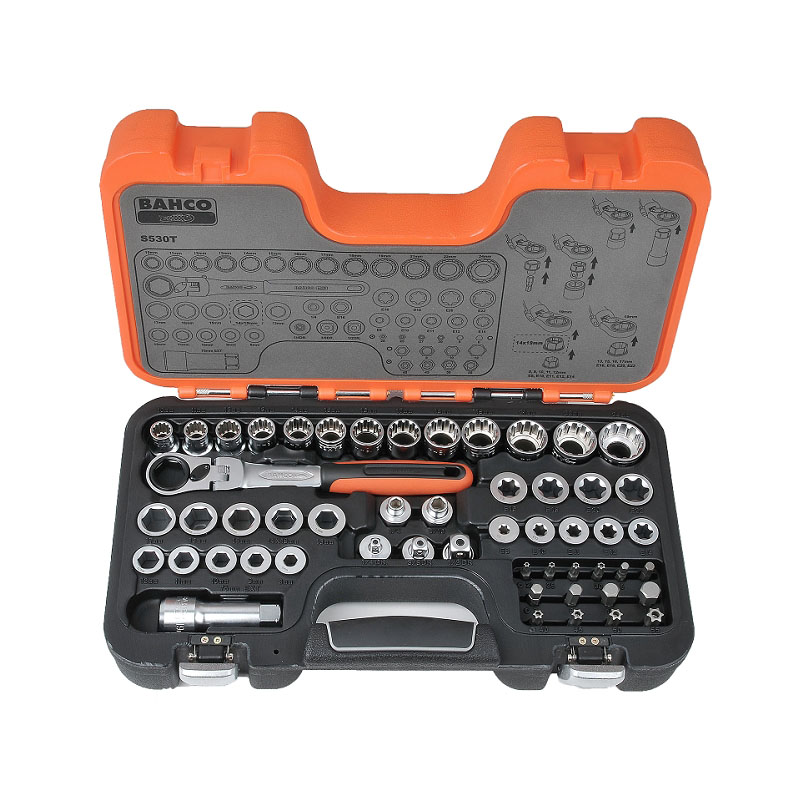 - 1 Stk. Durchgangs-Knarre, mit beweglichem Kopf, 72 Zahn / 5° Aktionsradius und 2-Komponenten-Griff